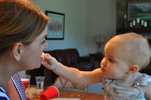 This afternoon we played a game with cheetos and cream (we used some whipping cream and some shaving cream and I think the shaving cream worked better -but didn't taste as good).